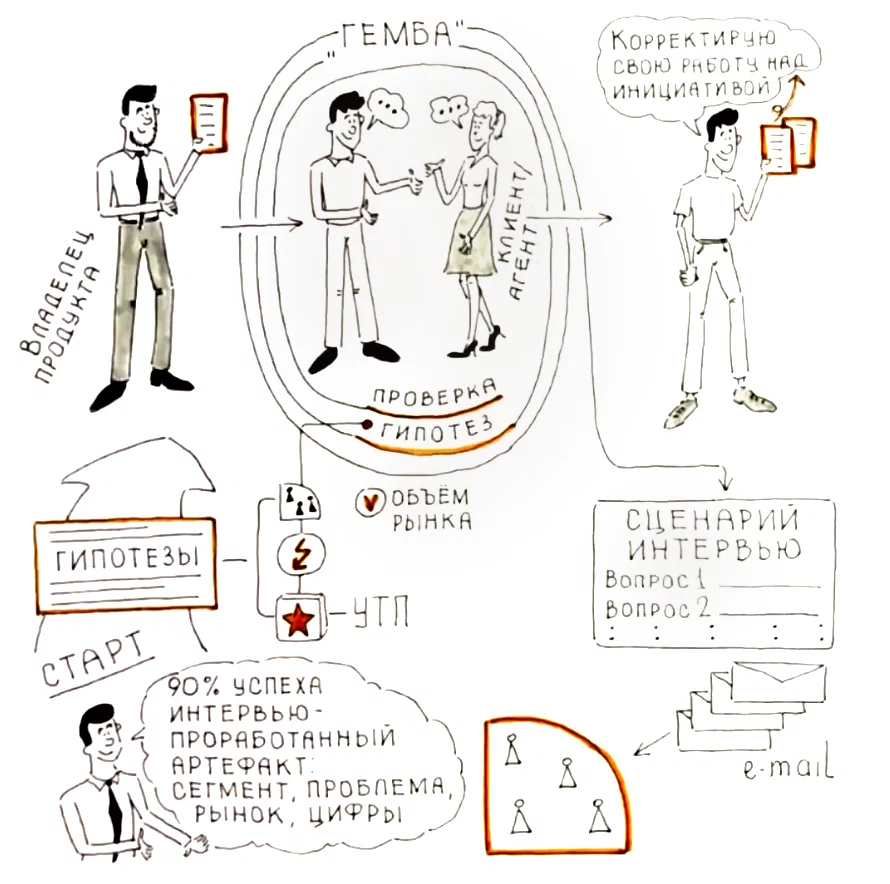 Вы фиксируете удачные вопросы, которые дают вам ценность, и включаете их в типовое интервью для рассылки – с его помощью статистически вы будете валидировать свои гипотезы.