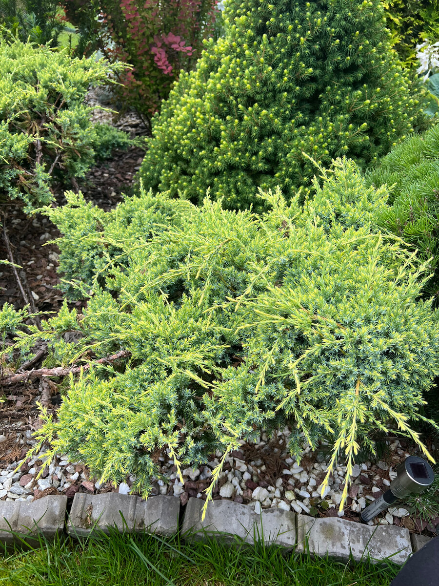И еще один мой вариегатный красавчик можжевельник, после стрижки. Его коротко не стригу, очень красивые у него приросты - золотые.
