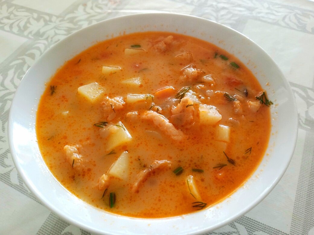 Всем привет! Рада приветствовать Вас на моём канале! Рыбное филе без костей значительно ускоряет процесс приготовления, ведь оно вариться 5-7 минут. Для этого рецепта подойдёт любая рыба на ваш вкус, будь то морская или речная. 1) Лук и морковь нарезать небольшим кубиком. 2) Для пассеровки выложить на дно кастрюли кусочек сливочного масла и добавить немного растительного (2 ст.л.). Отправить обжариваться лук до прозрачности на среднем огне, после чего выложить к нему морковь. 3) Чеснок натереть на мелкой тёрке, отправить обжариваться к остальным овощам. 4) Болгарский перец нарезать небольшим кубиком, выложить также в кастрюлю. Все овощи перемешать, посолить и поперчить. Много добавлять болгарского перца не стоит, так как он может перебить базовый рыбный вкус. 5) К овощам добавить 1 ст.л. томатной пасты. Периодически помешивая обжарить в течение 2 минут. 6) Картошку нарезать кубиком, примерно 1х1 см. Выложить к овощам, всё перемешать. Залить 2-2,5 литрами кипячёной воды. 7) Суп посо