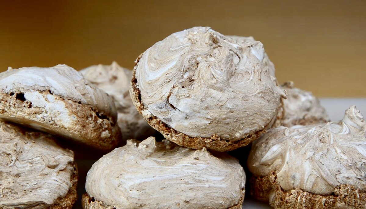 Это очень простой десерт, который и вправду готовится всего лишь из 3 ингредиентов. Это безе с шоколадом. Оно снаружи хрустящие, а внутри мягкое и тягучее. Ну уж очень вкусно, особенно с чашечкой кофе вообще идеально. Также в этот десерт можно добавить различные орешки, сделав его еще вкуснее. Вообщем попробовать стоит!) Ингредиенты: ✔Получается 9 безе ! Способ приготовления: Шаг 1 Для начала белки нужно взбить в мягкую пену, затем постепенно высыпать к ним сахар. И взбить их до устойчивых мягких пиков. Шаг 2 Далее нужно растопить темный шоколад, подождать чтобы он немного остыл, а затем вылить его к взбитым белкам. Затем сделать буквально пару движений ложкой, чтобы оставить мраморный рисунок. Шаг 3 Выкладываем безе на противень по одной столовой ложке. Можно выкладывать их и с помощью кондитерского мешка, но мне например нравится такой небрежный рисунок. Шаг 4 Выпекаем безе при температуре 130 градусов около 40 минут. Шаг 5 Безе снаружи хрустящие, а внутри получается мягк