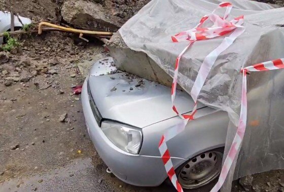 Четырехметровая стена рухнула и раздавила машины в Кисловодске