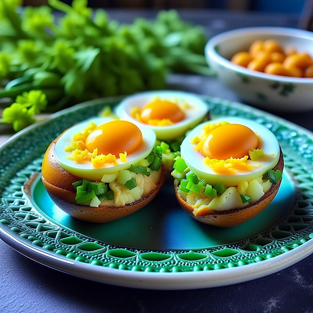 Здравствуйте! Сегодня я предлагаю вам попробовать интригующий рецепт - фаршированных яиц. Это блюдо, которое привлекает своей элегантностью и необычностью. Фаршированные яйца - это не только вкусно, но и красиво! Они станут ярким украшением вашего стола и порадуют гостей. А это, конечно же, самая главная цель - удивить и порадовать своих близких и друзей. Итак, погрузимся в мир вкусов и ароматов! Нам понадобятся всего несколько простых ингредиентов, но результат вас приятно удивит. Готовы? Ингредиенты: - 6 крупных яиц - 3 столовые ложки майонеза - 2 столовые ложки горчицы - 1 столовая ложка свежей измельченной зелени (петрушка, укроп) - соль и перец по вкусу - и, конечно же, ваше воображение! Можете добавить лук, копченую колбасу или любые другие предпочитаемые ингредиенты, чтобы придать фаршу свой неповторимый вкус. Теперь перейдем к процессу приготовления! Шаг 1: Варим яйца до готовности. Замечательный хрупкий белок и нежный желток - это главные герои нашего блюда. Вскипят