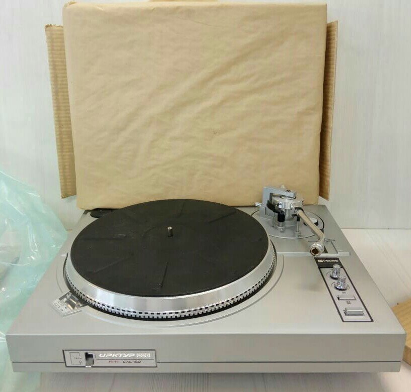 Проигрыватель работает, обороты выставляются в крайнем положении регулятора, немного дёргается метка, и не доходит тонарм до стойки 3-4 мм. Причиной этому время, 37 лет в коробке.