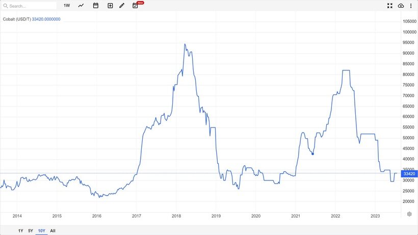 Второй момент — это то, что сейчас на рынке избыток кобальта, на который наложился слабый спрос т.к. все ждут рецессию. Цена на кобальт упала почти на 30% в этом году, а с пика 2022 года так и более чем хорошо припала.