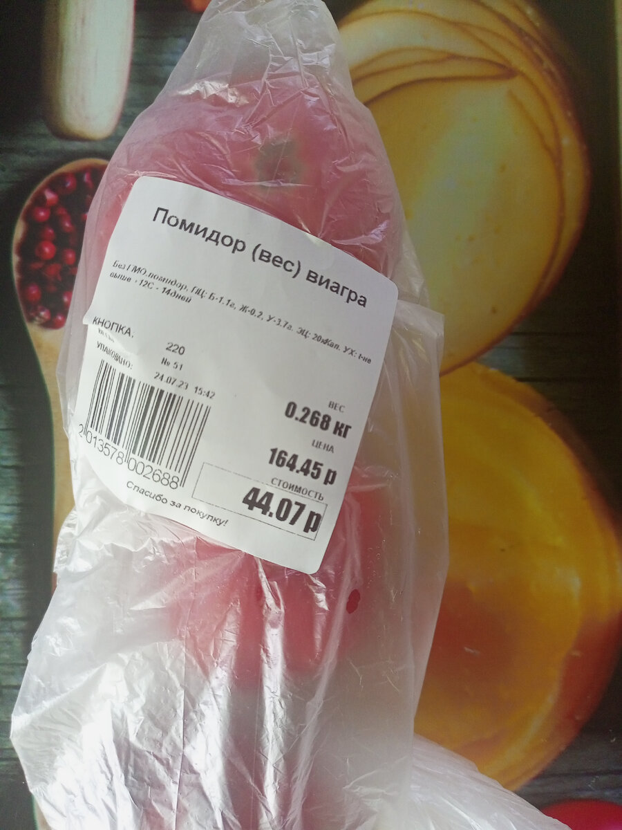 Сочные, сладкие, нежные.....Да , это я про томаты с необычным названием "Виагра". Звучит? Вот и мне стало любопытно в овощном отделе супермаркета. "А может не зря такое название. А? Мужу в салат как подрежу! Эх!" , подумала я и купила на пробу три помидорчика. Цена не маленькая....Для конца июля 164 рубля за килограмм это дорого. Немного предыстории.... Как - то группе "Мичуринцев" известной в РФ фирмы "Гавриш", захотелось вые....выделиться среди селекционеров, своим достижением в виде необычного помидора ( хотя огурцу это название, подошло бы больше!). Ученые, якобы утверждают, что в состав данного овоща входит афродизиак. Ну не знаю, я уверенна, что афродизиак присутствует не только в данном виде помидора, но и во многих фруктах, орехах и овощах. Что интересно, допустили в продажу такие томаты лишь в 2008 году. По вкусу " Виагра" напоминает обычный помидор, имеет цвет испорченного овоща , кожура немного жесткая и на этом всЁ. Ах да....Из плюсов, лично для меня, э