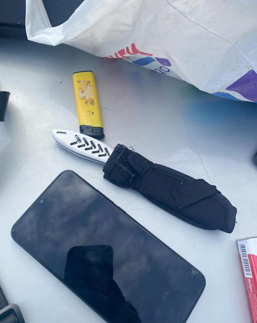 Сотрудники отдела вневедомственной охраны по Невскому району Санкт-Петербурга незамедлительно прибыли на место происшествия и, работая по горячим следам, у перекрестка улицы Коллонтай и Дальневосточного проспекта обнаружили двух граждан, похожих по приметам. При виде патрульного автомобиля указанные лица бросили на землю нож и газовый пистолет «Пионер БАМ 18-51» и попытались скрыться. Оба были задержаны и доставлены в 70 отдел полиции, похищенное изъято. На место выезжала следственно-оперативная группа.