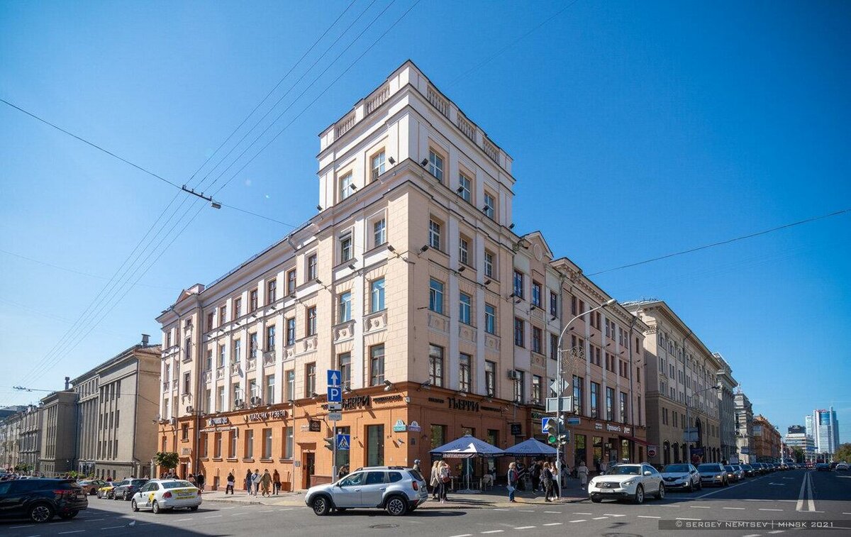 Вы точно знаете этот дом на пересечении улиц Ленина и Карла Маркса. И на первый взгляд кажется, что его построили после войны. Но это не так. Телеграм-канал "Красивое из Минска" показывает, каким этот дом был изначально. Адрес этого дома - Карла Маркса, 33. На первом этаже в нем работает популярная кондитерская "Тьерри". Когда проходишь мимо, кажется, что это такой же представитель послевоенной сталинской архитектуры, как и многие другие здания в центре. Но это не так. Этот дом построили еще в 30-х годах в стиле господствующего тогда конструктивизма. Он выглядел вот так: Он назывался тогда домом Белкоммунбанка, потому что жилье в нем давали сотрудникам этого учреждения. Говорят, в квартирах там были даже собственные ванные, что было редкостью на тот момент. Но во время войны здание частично разрушилось, поэтому потом его перестроили. И оно стало выглядеть уже по-другому - в близком к сталинскому ампиру стиле.