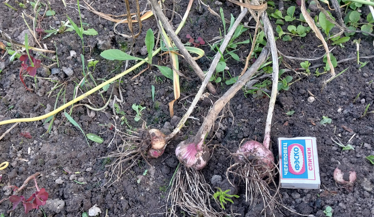 Некоторые головки чеснока разваливаются на зубки и теряют оболочку прямо в процессе вытаскивания: