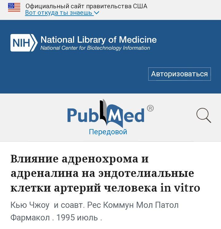 Департамент здравоохранения США ОФИЦИАЛЬНО тестирует влияние адренохрома на человека. Разве это не было теория заговора? И вот вопрос: где NIH взял этот адренохром, который они собрали, согласно их исследованию?