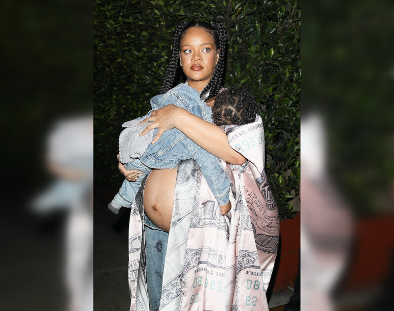 Рианна продолжает притягивать внимание папарацци и фанатов своим стилем материнства. 35-летняя исполнительница прорывного хита «Umbrella» выглядела как никогда гламурно, когда в субботу (22 июля) вечером прибыла в свой любимый лос-анджелесский ресторан «Georgio Baldi». «Девятка» из «8 подруг Оушена» несла на руках своего сына RZA Ательстона Майерса, одетая в укороченный топ, светлые застиранные деним-джинсы и длинный халат с рисунком 100-долларовой купюры. Рианна дополнила свой «ресторанный» образ черными ботинками и ожерельем из серебра, заплетя волосы в две косички. Хозяйка бренда Fenty Beauty без стеснения продемонстрировала свой растущий животик, когда входила в популярный итальянский ресторан в прибрежной Санта-Монике с годовалым сыном на руках. Малыш RZA выглядел не менее стильно в джинсах и однотонной джинсовой куртке. Однако он, казалось, дремал, пока мама несла в левой руке его черные кроссовки. Звездная пара Отношения Рианны с ее бойфрендом-рэпером A$AP Rocky начались в 2020-