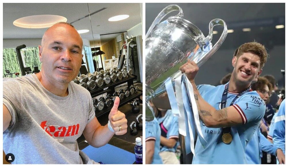 Стоунз столкнулся с Иньестой в тренажерке. Благодаря сыну Андреса появилось совместное фото игроков