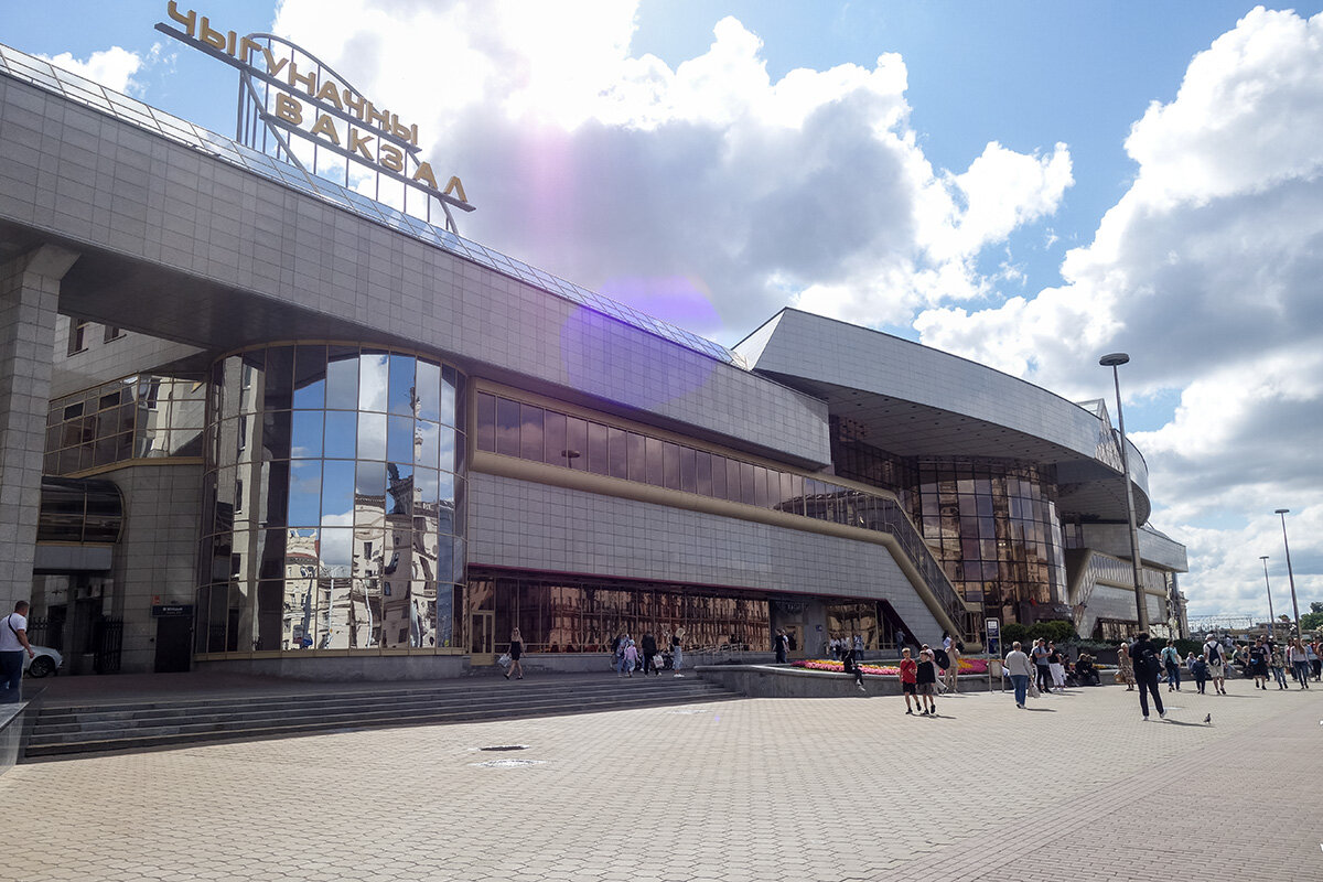 В связи с тем, что в Саратове снова началось обсуждение реконструкции железнодорожного вокзала, давайте посмотрим как выглядит снаружи (а самое главное внутри) железнодорожный вокзал Минска. Добраться до вокзала легко. Он находится в центре города, здесь же находятся остановки нескольких маршрутов трамваев, автобусов, электробусов и троллейбусов. Ансамбль застройки улицы Кирова у Привокзальной площади, построенный к 1959 году по проекту ленинградского архитектора Бориса Рубаненко, является одной из визитных карточек Минска. Этот вид называют «Ворота города». А это вид нового вокзала от «ворот». Строился вокзал с 1995 года и был торжественно открыт Президентом страны Александром Лукашенко в 2000-м году. Группа архитекторов: первый вариант: Шамрай Я., Васильев Е., Каган Э., Спичак Б., новое здание: Крамаренко В. В., Виноградов М. К. От первого варианта остались лишь конкорс над ж/д путями и выстроенный к 1990-му году служебно-технический корпус, который сейчас используется как гостиница
