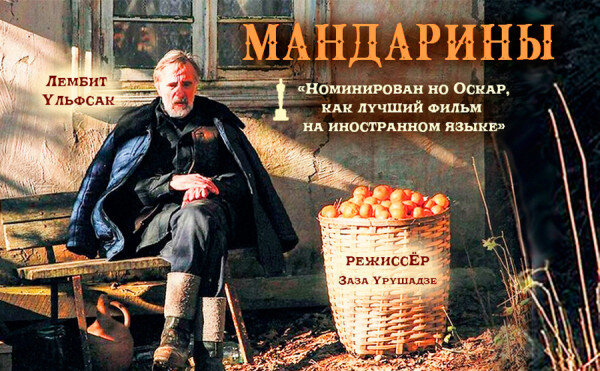 По рекомендации одной из групп ВК о «добром кино» посмотрел фильм «Мандарины», производство Эстония, Грузия, 2013 год. Картина получила около 15 международных наград, номинировалась на Оскар, что в нынешней действительности уже вызывает некоторое подозрение. Сюжет фильма построен на примирении двух враждующих солдат, которых ранеными подбирает местный житель, лечит и т.д. Решил посмотреть именно из-за сюжета, также заинтересовала и роль актёра Лембита Ульфсака (известен нам по ролям профессора Жака Паганеля «В поисках капитана Гранта» и мистер Эй в «Мери Поппинс, до свидания»).