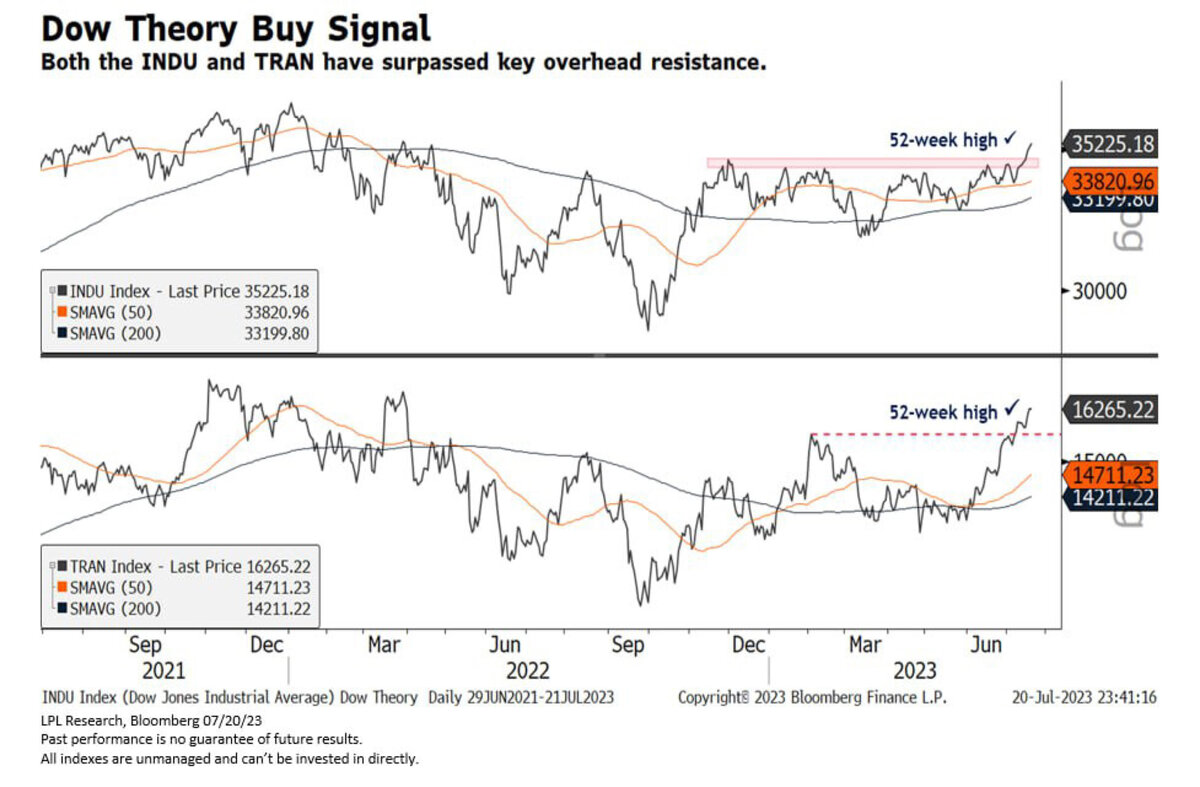 На рынке акций США только что сработал классический сигнал на покупку - Dow Theory. #Ралли на рынке становится все более широким. Dow Jones Transportation Average на 52-недельных #хаях подтверждает ралли в индексе Dow Jones Industrial Average — LPL Research