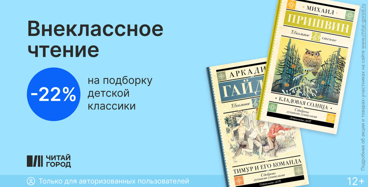 Друзья, мороженое, сон – вот формула идеальных каникул. Не хватает только увлекательных книг :) Закажите детям классику: от сказок Эдуарда Успенского до историй Александра Пушкина. Скидка 22% на подборку детской классики – для авторизованных пользователей. Акция действует с 17 по 30 июля в интернет-магазине.
