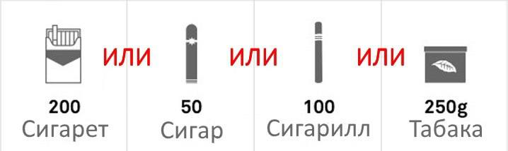 Теперь перемещение физлицами никотинсодержащей продукции по России предусматривает не более 200 сигарет, или 200 изделий с нагреваемым табаком, или 50 сигар (сигарилл), или 250 граммов табака либо общим весом не более 250 граммов указанной продукции в ассортименте на одно физическое лицо, достигшее возраста 18 лет.