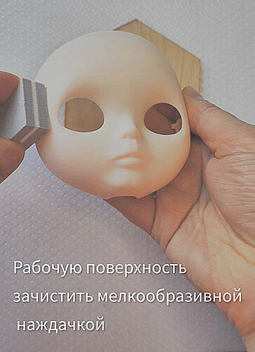 Сначала обезжириваем все рабочие поверхности – лицевую панель Blythe, инструменты и плоскость, на которой будете смешивать гель с пастой (подойдет и стекло, и пластик). Лицевую панель предварительно необходимо зашлифовать, чтобы поверхность была матовая.