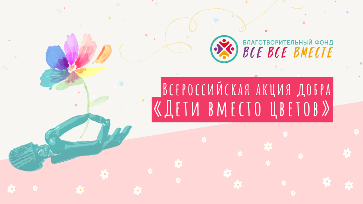 Фонд "Все Все Вместе" присоединяется к самой популярной в России акции на 1 сентября — "Дети вместо цветов". Зовём тебя с нами! Суть акции Школьники и их родители договариваются подарить учителю на 1 сентября один общий букет от всего класса. Сэкономленные на покупке цветов деньги перечисляют на помощь детям. Посмотрите: цена одного букета — в среднем 1 500 рублей. Умножим примерно на 25 учеников и получим 37 500 рублей. Если к акции присоединится параллель классов, то они соберут уже 187 500. Это большая часть стоимости активного протеза руки для ребёнка. Твоя помощь не завянет В этом году акция состоится уже в десятый раз. За предыдущие девять лет участники помогли тысячам детей с заболеваниями. Школьники пожертвовали на благотворительность столько денег, сколько не переводят миллионеры! К акции присоединились благотворительные фонды со всей России. Наш фонд в 2022 году в акции поддержали ученики 7 классов 5 школ из 4 городов страны. Выбирают жизнь детей вместо цветов актёры, певцы,