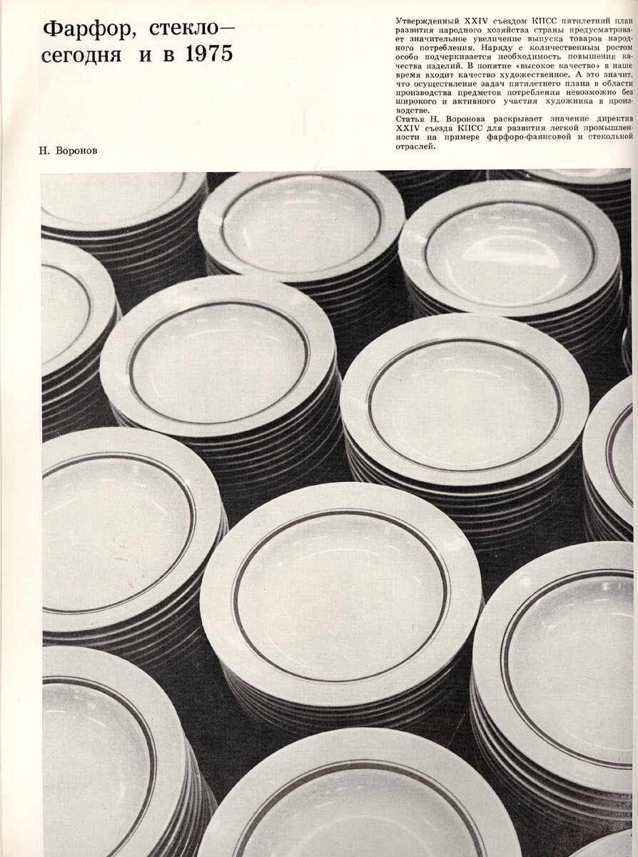 Друзья, настоятельно рекомендую прочесть объёмную статью из августовского номера журнала «Декоративное искусство СССР» 1971 года о положении дел в фарфоро-фаянсовой и стекольной промышленности. Статистика, нормы, цены и планы – удивляют и поражают! Но по сути Никита Воронов констатирует последнюю стадию деградации советских художественных производств фарфор и стекла. Прочтите до конца!