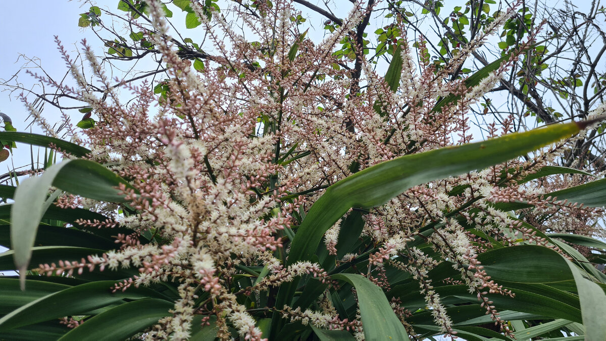 - Какой удивительно приторный аромат… - Мне кажется, что это не растение пахнет, а какое-то кондитерское и изделие! - Ох, как можно жить в городе, где такой стойкий противный аромат… Цветы у источника высоко. Почувствовать невероятно сладкий аромат кордилины можно в безветренную погоду, стоя под ней))) Кордилина (сем. Астелиевые) (Cordyline Royen. ex Adans. – Asteliaceae). Ранее Кордилину включали в состав семейства Лилейные. Древовидные растения с относительно тонким, но выраженным, слабо разветвленным стволом и пучками мечевидных листьев на концах побегов. Маленькие, колокольчатые цветки в крупных терминальных соцветиях. Плоды – ягода с 1-2 семенами. Размножаются семенами, в условиях культуры вегетативно. В роде около 50 видов, распространенных преимущественно в тропических и субтропических областях Южного полушария. В условиях района Сочи и Сириуса 3 новозеландских вида, из которых гарантировано для выращивания в открытом грунте можно рекомендовать один из них. Кордилина нераздельн