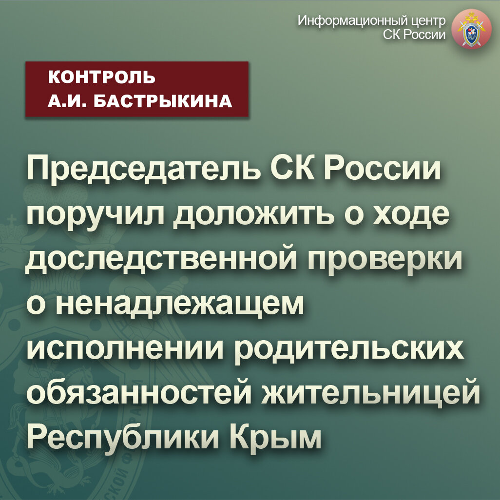 #СледственныйКомитет #СКРоссии #СКР #ИЦСКР #Информационныйцентр #АлександрБастрыкин #Председа
