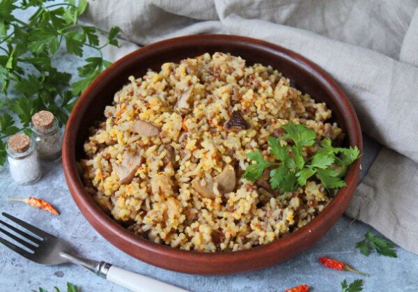 В пост или просто когда захотелось простой и легкой еды, приготовьте это блюдо. Каша из трех видов крупы получается вкусной и сытной, а грибы придадут ей бесподобный аромат. Берите идею на заметку! Больше рецептов можно найти на сайте. Описание приготовления блюда: Грибы для каши можно брать любые, у меня лесные замороженные. Пшено иногда заменяют перловой крупой и увеличивают количество овощей. Специи добавляйте по своему вкусу. Назначение: На обед / На ужин