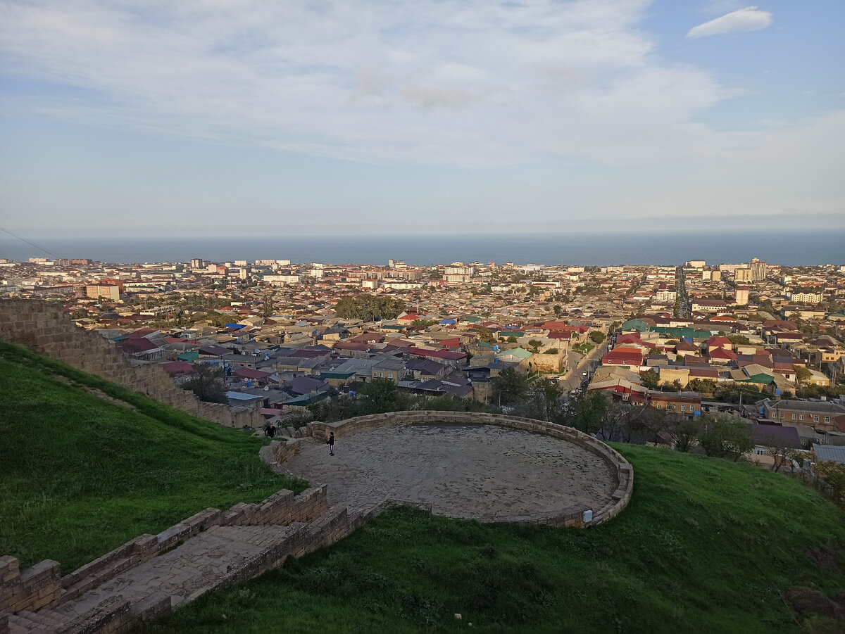 Сегодня мы едем в самый южный и самый древний город нашей страны! Официально Дербенту 2000 лет, но ни один местный житель с этим не согласится. Согласно раскопкам и историческим рукописям городу все 5000 лет. Кратчайшая дорога из Гуниба в Дербент идёт через горный перевал и село Леваши.Дорога хорошая, но как только поднялись в гору, к перевалу, стали в пробку. Кто бы мог подумать,что на горном серпантине можно простоять в пробке пол часа. Наш путь преградил обвал. Огромные каменюки сошли с горы и завалили путь. Благо,к моменту нашего приезда , там уже во всю работала уборочная техника. Пока стоим, любуемся прекрасными осенними видами с высоты. Преодолев перевал, дорога серпантином пошла вниз и виды за окном стали меняться. И горы стали другими! Тоже красивыми, но другими! Постепенно горы становились всё меньше, а потом мы вообще ехали по равнине. Вот такой многогранный Дагестан! За окном проносились капустные поля, маленькие села, фруктовые сады. И вот на горизонте показалось море