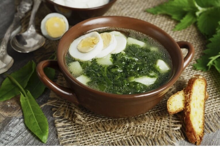 1.Холодный суп из щавеля Вам понадобятся: большой пучок щавеля, маленький пучок зеленого лука, 3-5 ст.л кефира, нежирной сметаны или кислого йогурта, 1 огурец, 1 картофелина, соль, 2-3 горошины душистого перца, вода или мясной бульон. Приготовление. Яйца отварите, лук и огурец тщательно вымойте и нарежьте на маленькие кусочки, у щавеля обрежьте хвостики, картофелину нарежьте на небольшие кубики. Доведите до кипения воду или мясной бульон, посолите, добавьте перец и щавель. Затем еще раз доведите заготовку до кипения и бросьте в нее картофель. Когда он сварится, остудите суп, заправьте его кефиром или сметаной и добавьте зелень и яйца. 2.Суп с колбасой и вермишелью Вам понадобятся: 2-3 картофелины, 1 луковица, 1 некрупная морковь, 100-150 г колбасы, 2-3 ст.л. вермишели (любой), растительное масло, лавровый лист, соль, специи, зелень по вкусу. Приготовление. Овощи промойте и почистите. Лук и картофель нарежьте кубиками, морковь натрите на крупной терке. Вскипятите в кастрюле 2-2,5 л воды