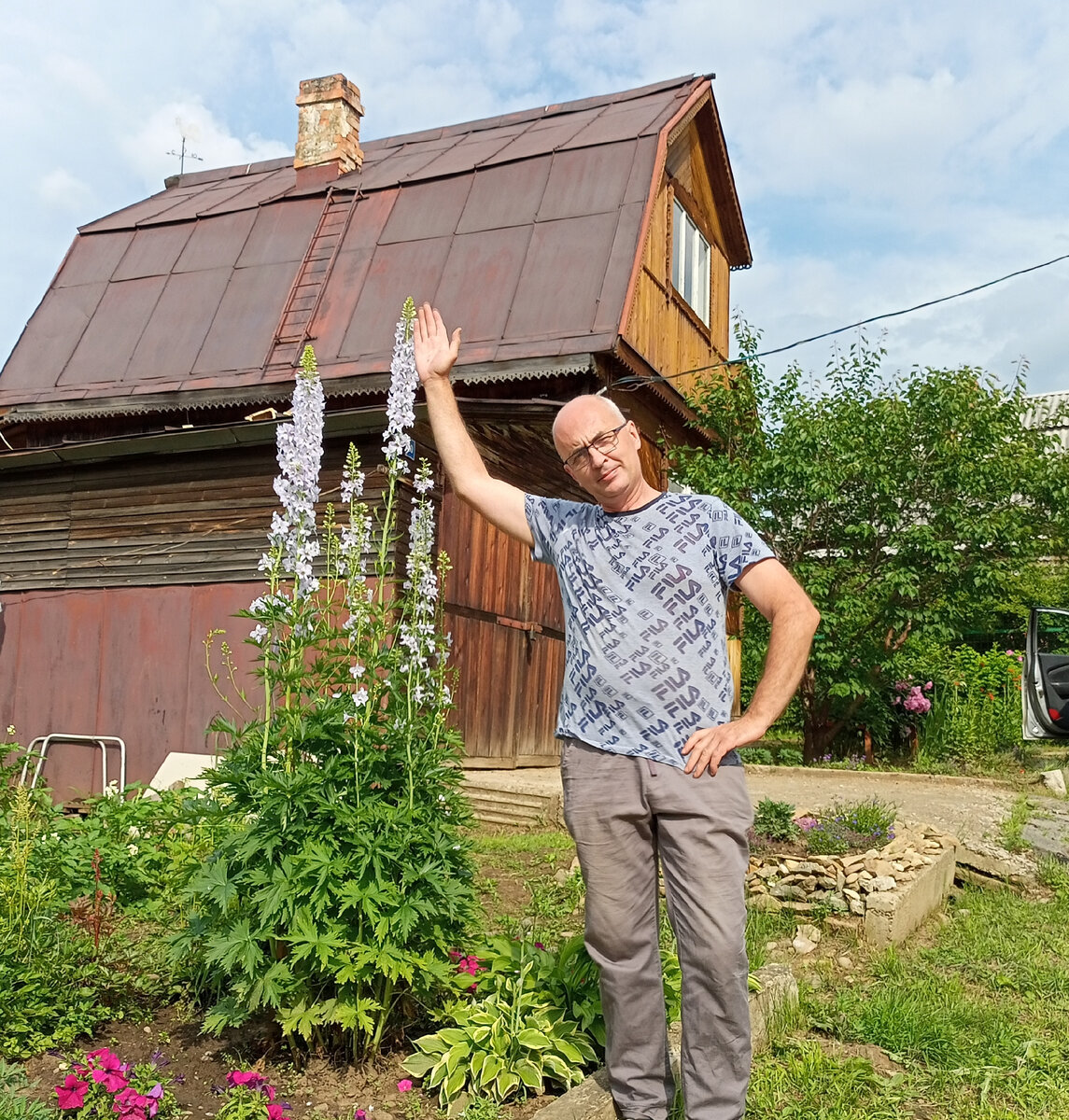 Давайте вспомним наши огородные дела и взглянем на них с юмором. - На что жалуетесь? - Доктор! Я постоянно куда-то тороплюсь, меня постоянно не покидает ощущение, что я что-то не успеваю. Я постоянно хожу, наклоняюсь, приседаю, тяну, дёргаю, совершаю какие-то возвратно-поступвтельные движения. И ещё... Мне постоянно нужно лить воду. Много воды. А вечером я пристаю к близким людям с требованиями есть побольше огурцов, кабачков, салата, иначе я все это выкину к черту... - Да у вас дачетоксикоз ) Поэтому не забывайте отдыхать! И не работать в самую жару, которая, наконец-то, пришла и к нам в Иркутскую область. Ну а пока можно вдоволь любоваться вот таким высоченным дельфиниумом. Прекрасный цветок, которому дали название в честь города Дельфы, то ли в честь дкльфинов