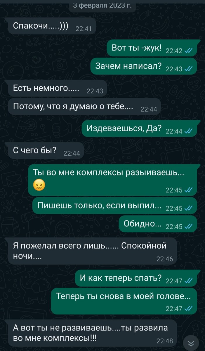 Качели... детская забава... Вы когда-нибудь задумывались, почему дети любят качели? С самого рождения мы укачиваем своих детей... может быть, укачивание напоминает нашем детям то время, когда они ещё плавали в животе матери?... а, может быть, дело просто в нашей физиологии?.. как бы там ни было, чем старше мы становимся, тем более захватывающие, быстрые и, иногда даже, опасные качели нас увлекают... У взрослых тоже есть качели в жизни, но их не так просто увидеть, на них нельзя сесть по своему желанию... и уйти от них не так легко... они эмоциональные... Мои же качели начали набирать скорость... И вот... вот те слова, которые он должен был написать ещё месяц назад... у Него есть женщина... Сказать, что мне было больно? Да... наверно... но больше всего я испытывала обиду... Не знаю, было ли это частью моего воспитания или моим осознанным решением, но я придерживалась такому принципу: Я не хочу, чтобы кто-то лез в мою семью, поэтому Я НИКОГДА НЕ БУДУ ЛЕЗТЬ В СЕМЬЮ ДРУГОГО ЧЕЛОВЕКА!!! И в