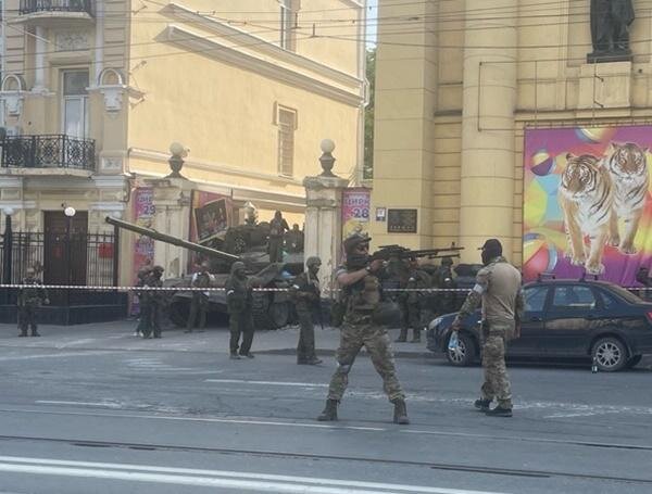Напомним, утром 24 июня «вагнеровцы» заняли здание ЮВО. Они поставили военную технику на Буденновском проспекте, а от Красноармейской до Большой Садовой выставили людей с оружием. Сотни ростовчан приехали в центр города, чтобы увидеть людей в камуфляжной одежде, танки и бронемашины. Жители Ростова делали селфи с прибывшими «гостями» и снимки на фоне военной техники.