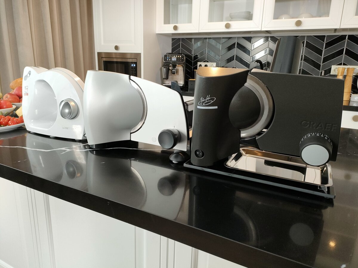 Теперь о героинях нашего теста. Недорогая модель вроде бы справляется, она все порезала, но качество некоторых продуктов — колбас, сыра, хлеба — нам не очень понравилось. Steba лучше справилась со всеми продуктами, но какие-то шероховатости все равно были. В общем, здесь сработало простое правило: чем дороже устройство, тем оно, как правило, лучше. С премиальной моделью у нас не было вообще никаких проблем, и результаты реально хорошие. В общем, GRAEF Premium Cut Lafer Edition мы отдаем первое место, Steba AS 200 — второе место, а Clatronic AS 2958 — третье место.