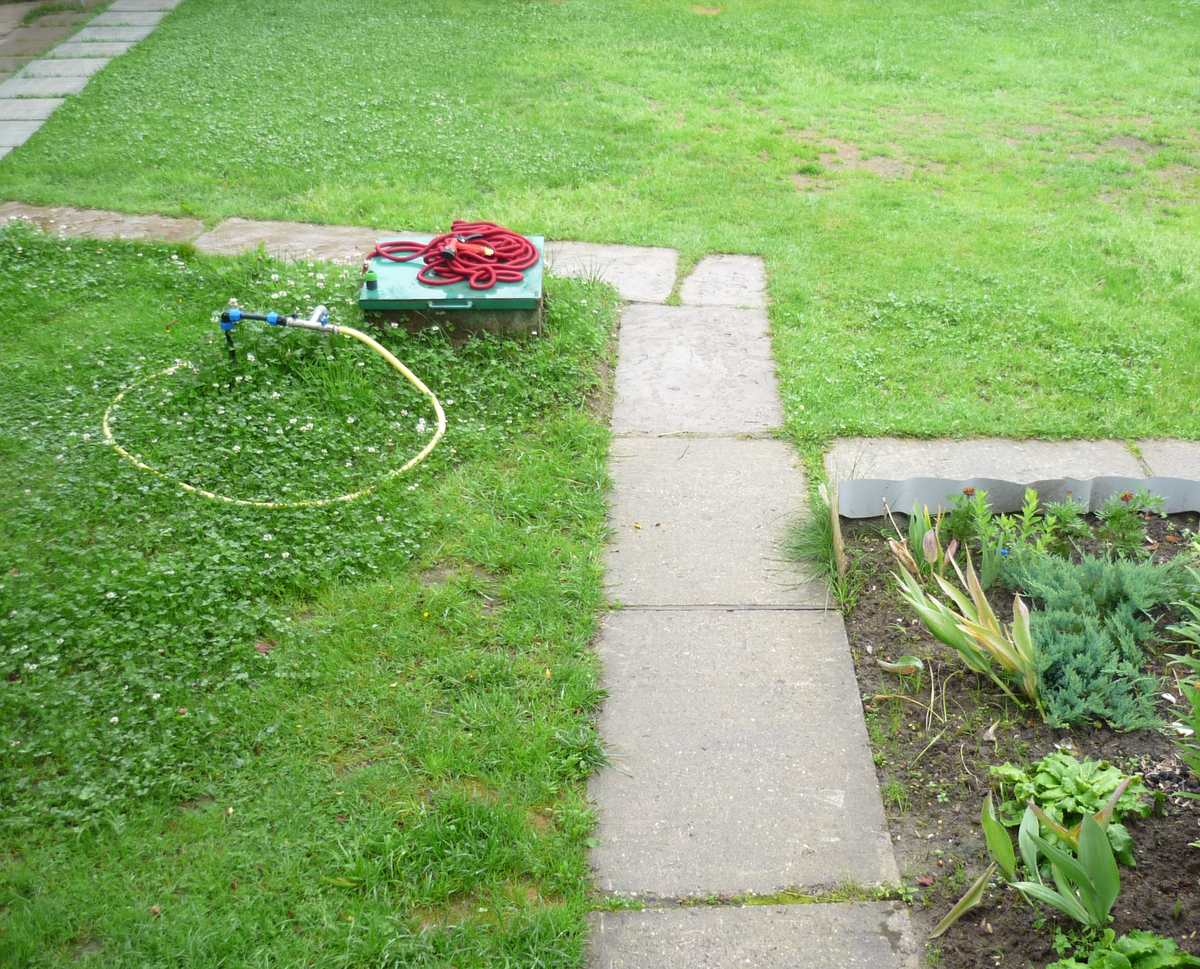 Вчера дождь начался в полдень и сейчас идет, а газон без луж. Мы туда не один самосвал песка вбухали.