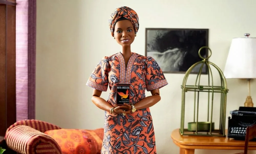 Майя Энджелоу - писательница, педагог, активист и доктор. В свое время получила множество наград за свой вклад, включая более 50 докторских степеней. В руках кукла держит свою книгу, которая Майя выпустила в 1970 году, где она рассказала о своей автобиографии.