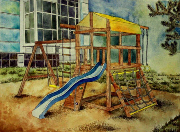 Воспитатели в это время сидели на соседнем участке. Дети увлечённо играли. Кто-то кидался песком, кто-то толкался в очереди на металлическую горку...