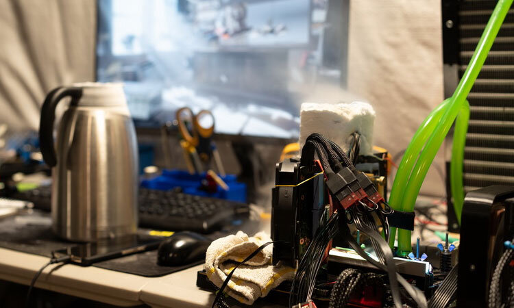 Конечно, эксперимент не обошелся без жидкого азота и модифицированных параметров vBIOS, настройки которого по энергопотреблению в режиме ожидания были повышены до приличных 300 Вт, тогда как максимальный показатель, установленный Asus для этой карты, составляет 450 Вт.