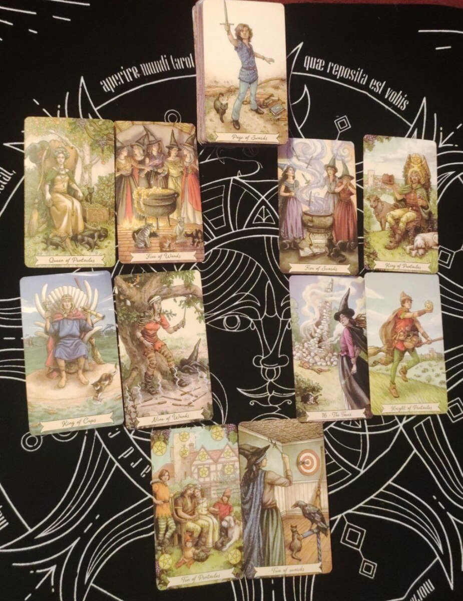 Доброго времени суток! Это расклад поможет вам понять суть проблемы и даст возможность найти наилучший выход из сложной ситуации, благодаря тому, что показывает оптимальное решение. Он поможет также понять, почему эти тяжелые испытания в сфере чувств происходят в вашей жизни. Приветствую всех подписчиков и гостей канала, и приглашаю подписаться на мой канал. Предлагайте свои темы раскладов, и я буду очень рада вашим лайкам и подпискам на канал! 1,2,3,4. Сама проблема и фон, на котором она возникла - Королева Пентаклей, 5 Жезлов, 5 Мечей, Король Пентаклей. Возможно, у вашего партнера была постоянная женщина, супруга. И вам пришлось вступить с ней в конкурентную борьбу, которой вы, в общем-то и не хотели. Но чтобы быть с этим партнером в отношениях, вам бы пришлось бороться за свое место рядом с этим мужчиной, то есть он втянул вас в борьбу, которая вам была не нужна. И вы посчитали, что ваш партнер поступил с вами подло, он предал вас. Для вас узнать о том, что у него, оказывается, есть