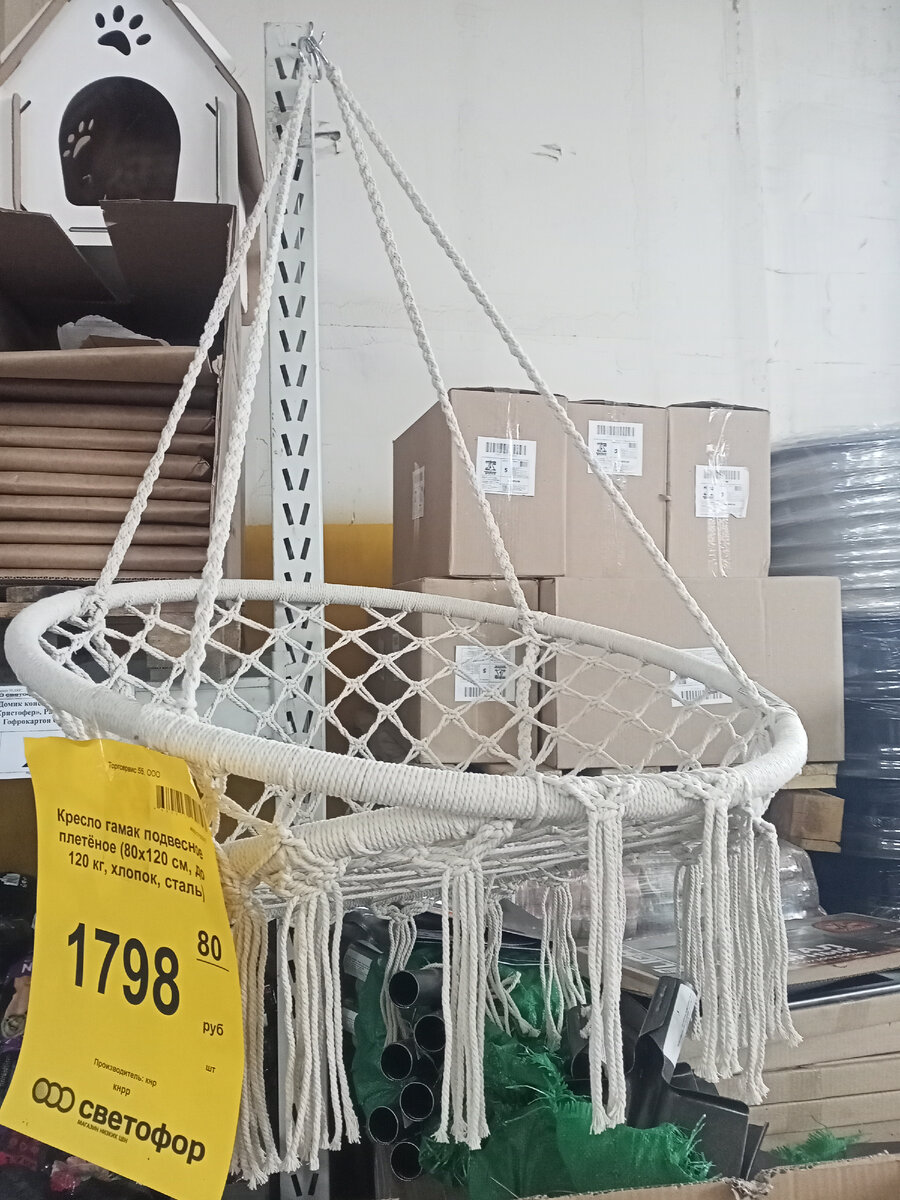 Дорогие друзья, огромный вам привет и замечательного дня. В сегодняшнем обзоре расскажу вам, что интересного появилось в магазине Светофор и по каким ценам. В продаже увидела такие плетёные подвесные кресла-гамаки. Китайское производство. Размер кресла 80×120 см, цена 1798.80. Максимальная нагрузка на кресло 120 кг. Кресла имеют прочный стальной корпус, хлопковую оплетку, оригинально смотрятся, очень удобные. Складные кресла Луна. Производитель Китай. Расцветки разные, стоимость кресла составляет 1499.90. Максимпльная нагрузка на кресло 100 кг. Кресла имеют металлический корпус, прочные, удобные, устойчивые, компактные. Складные туристические столы с ламинированной столешницей. Российское производство. Размер стола 70×50×60 см, цена 1222.90, расцветки в большом ассортименте. Столы очень прочные, устойчивые, удобны в использовании. Разборные мангалы Уголёк Light. Российское производство. Размер мангала 500×300×500 мм, цена 514.90. Мангалы по качеству не очень, металл тонкий, быстро пр
