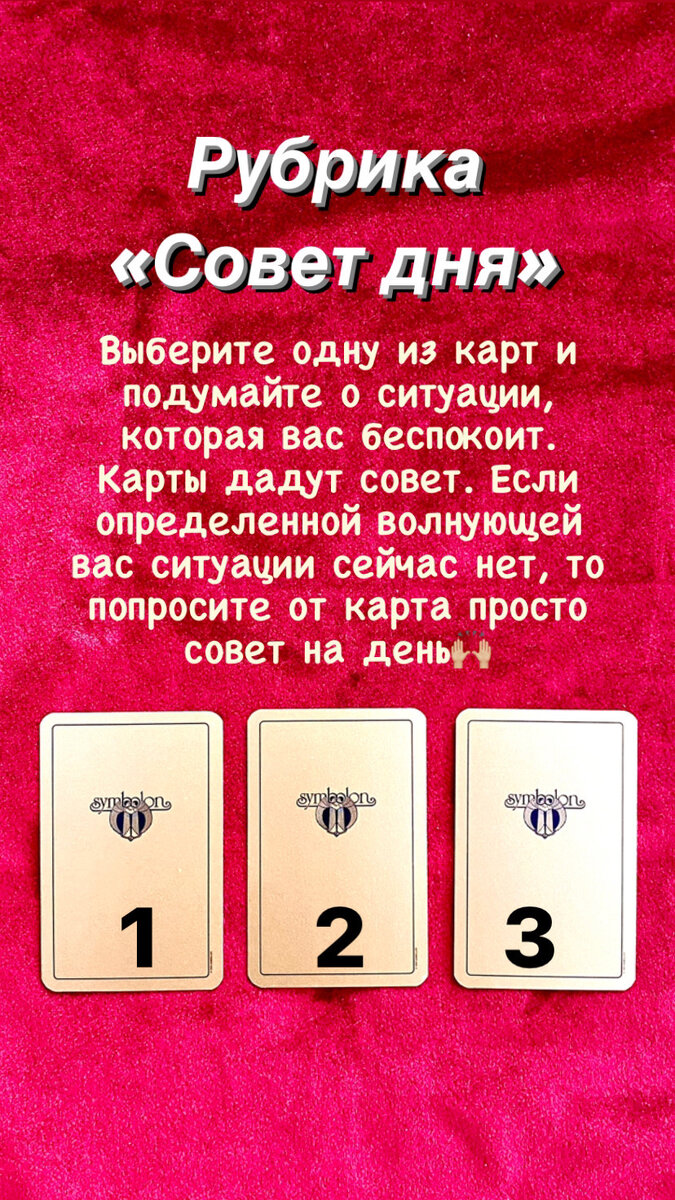 Доброго времени суток! Меня зовут Екатерина. Я таролог, астролог и мастер по чакрам. Для консультации со мной или для обучения картам Таро или чакрам пишите на +79208783288 С 2018 года я провожу индивидуальные расклады на таро и на картах #симболон , разборы натальных карт на разные тематики: #любовь #отношения #семья #бизнес #финансы психологические проблемы, #работа ;разбор натальных карт у детей: таланты ребенка, его особенности восприятия, в какую секцию лучше отдать, какую профессию выбрать; разбор и диагностика личности по чакрам, делаю прогнозы на год или другой период на таро или с помощью астрологии. А так же являюсь мастером по чакрам и изучаю психологию. А с 2022 года обучаю картам Таро и разборам по чакрам. Сегодня я с большим удовольствием проведу для вас общий расклад «Совет для вас от карт Симболон»✨В котором карты дадут вам ценный совет. Итак, чтобы лучше сонастроиться с картами, необходимо закрыть глаза, отбросить все мысли и сконцентрироваться на вашей ситуации, в