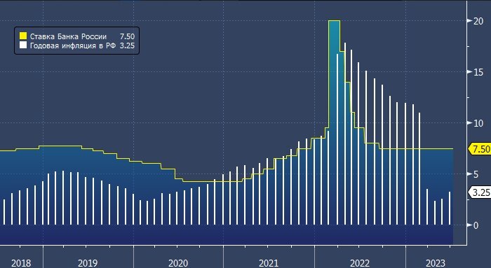 "Поэтому повышение ставки на 100 базисных пунктов в июле наиболее вероятно - с помощью такого шага ЦБ повысит привлекательность рублевых депозитов. Это, в свою очередь, поддержит валютный курс и усилит сберегательные настроения населения", - считает Рапохин."Инфляция по итогам 2023 года вряд ли превысит прогноз Банка России (4,5-6,5%) даже при сохранении ставки на текущем уровне. Однако ужесточение денежно-кредитной политики необходимо, чтобы исключить риски выхода инфляции за целевые 4% в следующем году. По оценкам самого регулятора, эффект от действий ЦБ полностью проявляется в экономике только за 3-6 кварталов", - отмечает он.