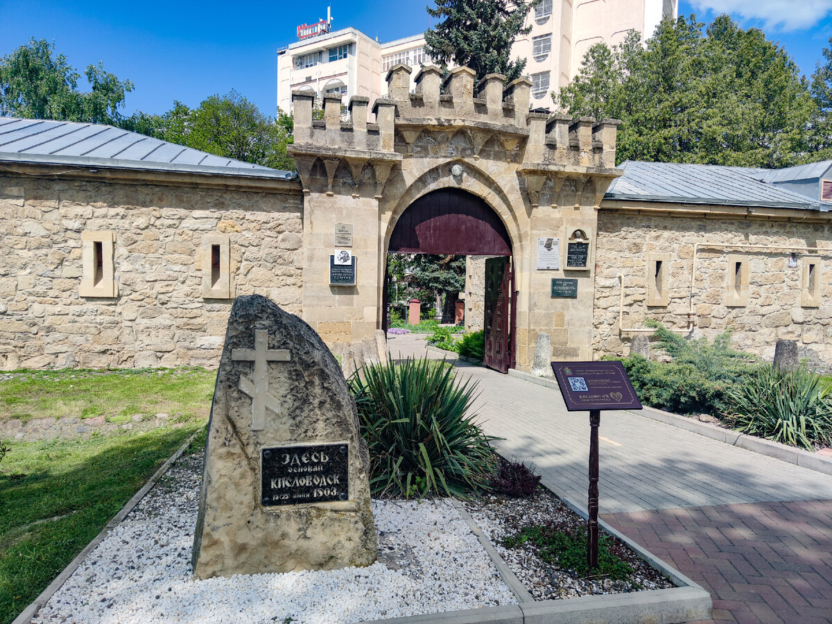 Музей расположен в здании Кисловодской крепости. Она была основана в 1803 году, и именно с неё началось строительство города. Об этом напоминает памятный камень.