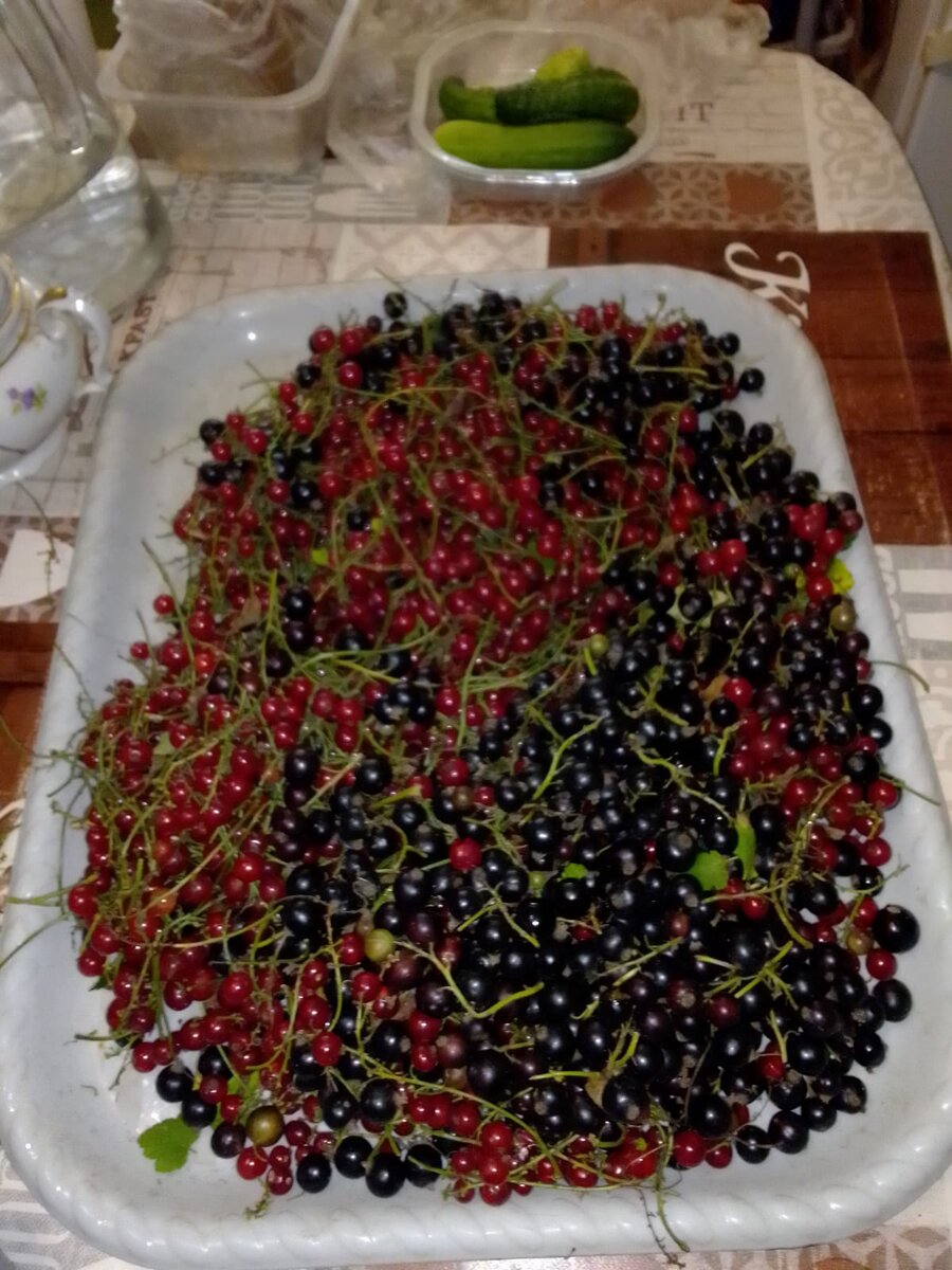 Вчера у нас целый день лил дождь. Ну просто прорвало где-то и не хотело останавливаться. Но, смородина ждать не может и мы, надев дождевики, с песнями и прибаутками, полезли под кусты. Осыпается уже красавица,нужно поторопиться. Набрали ведро 12 литровое, хотели уже идти перерабатывать, но позвонил зять и выманил нас на вторую дачу.