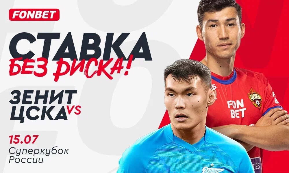 Заходите на Fonbet, изучайте широчайшую линию на Суперкубок России и делайте ставку с коэффициентом от 2.00 без какого-либо риска. В случае проигрыша Fonbet вернет вам на бонусный счет 100% от ставки!