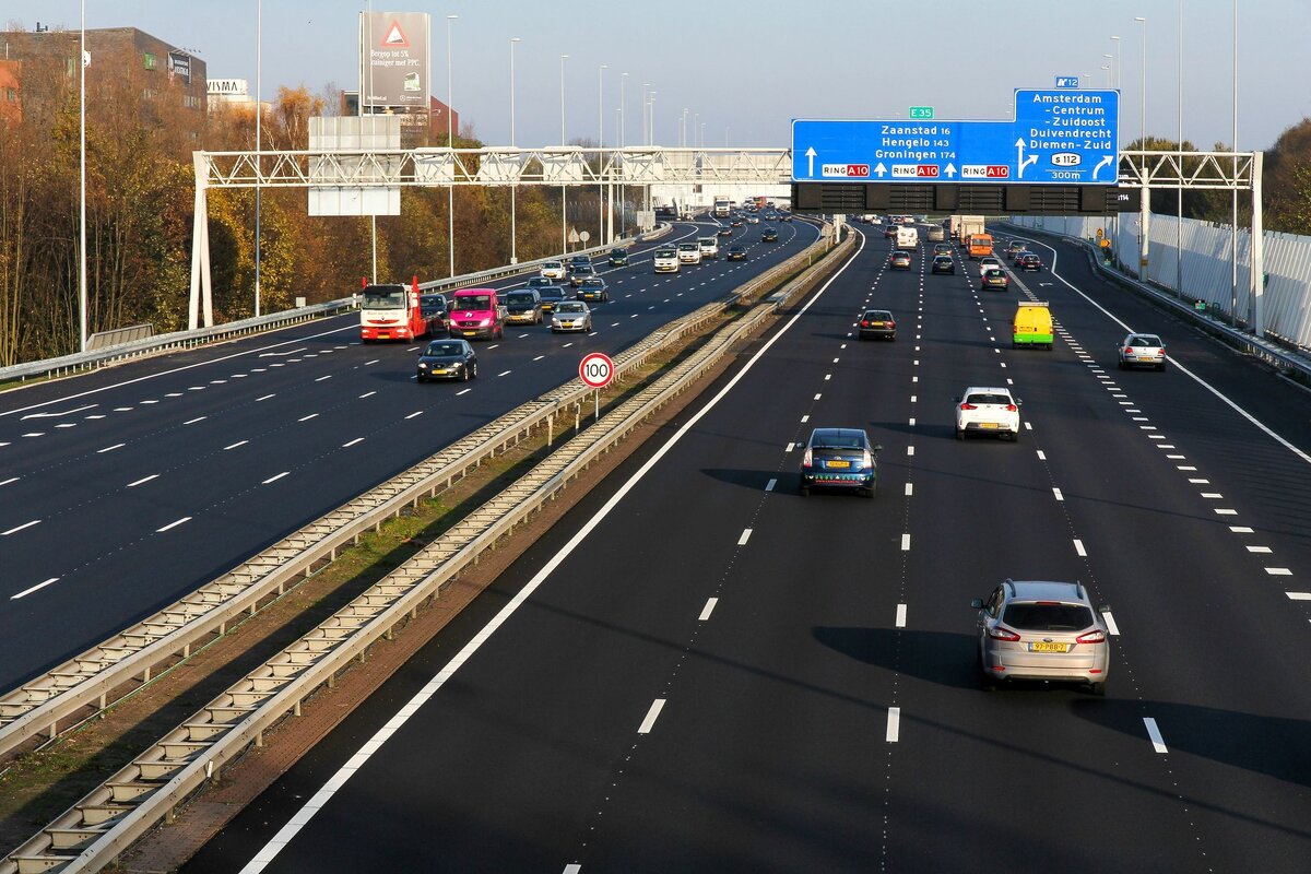 Не менее 10 полос в одну сторону, и в обратную столько же. Все едут с включенными фарами, друг друга обгоняют, въезжают и выезжают с шоссе абсолютно никому не мешая. Фантастика просто!