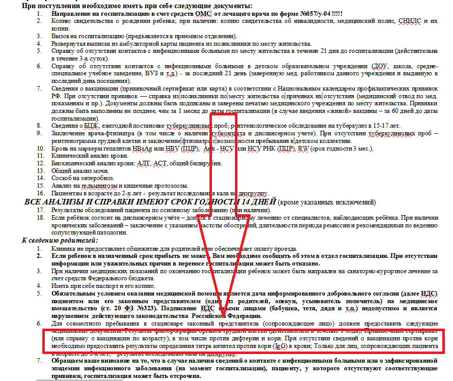 Честно говоря, прививку от кори я сделала не по доброй воле. Мне предстояла госпитализация с ребёнком в одну из крупных федеральных клиник. Обязательным условием для попадания туда с малышом было наличие прививки от кори или анализа крови на антитела к ней.