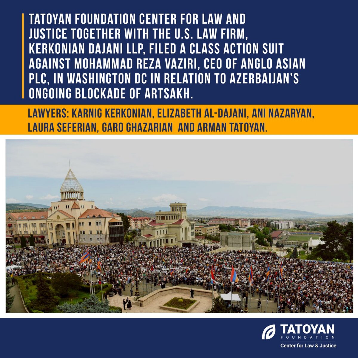 Фонд "Татоян" в сотрудничестве с Керкониан Даджани подали иск против главы Anglo- Asian Mining Company в связи с блокадой Арцаха
