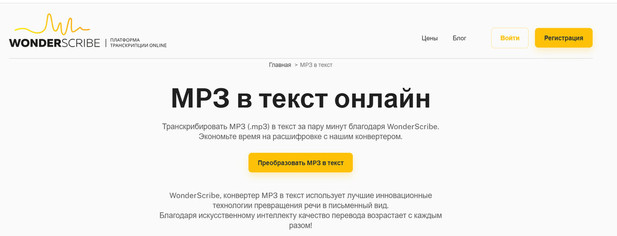Wonderscribe предлагает простой и эффективный способ преобразовать MP3 в текст. С помощью этого сервиса вы можете получить текстовую версию любого MP3-файла в несколько простых шагов. Вам больше не нужно тратить время на прослушивание длинных записей или вести ручной перевод.