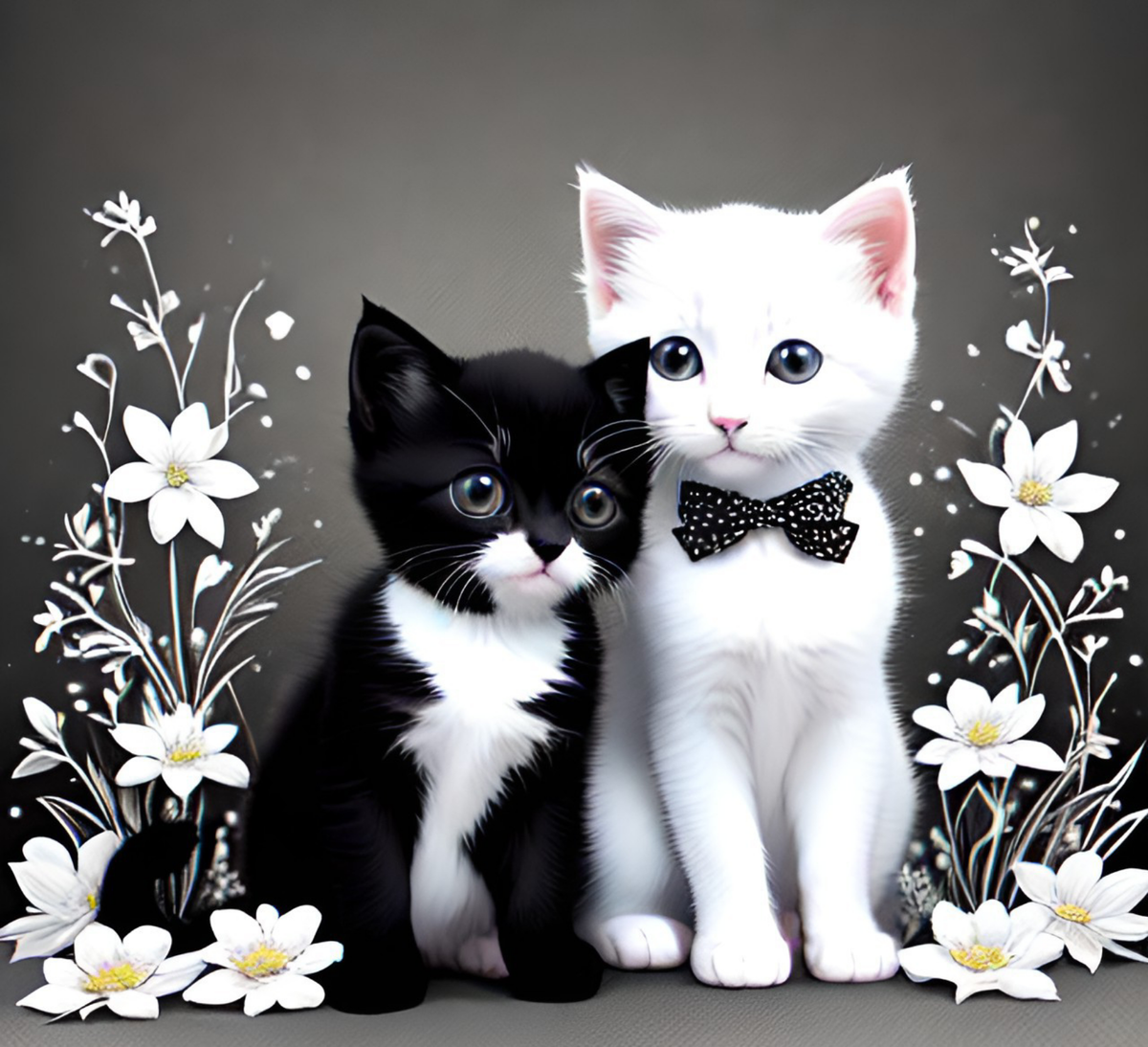 В маленьком городке на окраине страны жили два котенка - белый и черный. Они были неразлучными друзьями с самого детства, когда их нашли брошенными в коробке у дверей дома одного из местных жителей. Белый котенок был очень пушистым и красивым, а черный - маленьким и худеньким. Но несмотря на это, они были очень дружными и всегда помогали друг другу. Однажды черный котенок заметил, что белый котенок начал терять свою красоту и пушистость из-за болезни. Черный котенок решил помочь своему другу и отправился на поиски лекарства. Он прошел через лес, горы и реки, пока не нашел волшебный цветок, который мог вылечить белого котенка. Черный котенок сорвал цветок и принес его своему другу. Белый котенок выпил сок цветка и начал быстро выздоравливать. С тех пор они стали еще более близкими друзьями. Белый котенок стал еще более пушистым и красивым благодаря своей новой силе, а черный котенок стал еще умнее и сильнее благодаря своей дружбе с белым котенком. Они жили долго и счастливо, помога
