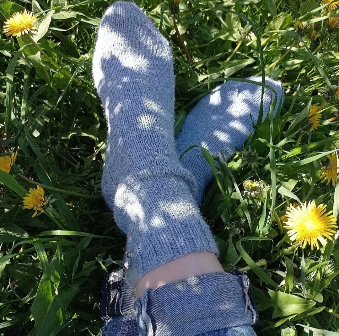 Носки вяжутся на чулочных спицах сверху вниз от манжеты. Пятка "подкова" с укреплённой стенкой. Размер : 37. Спицы: 2,5 см Пряжа: Drops Nord ( 45 альпака, 30 полиамид, 25 шерсть высокогорной перуальской овцы) 170 м/50 гр. Описание: На спицы 2,5 набрать 64 петли, распределить равномерно на 4 спицы. Вязать резинку 2*2 ( 2 лицевые, 2 изнаночные) 16 рядов. После манжеты переходим к поголëнку. Вяжем лицевой гладью примерно 10 см. После поголëнка пристураем к пятке. На пятку берем половину петель от общего количества ( 32 петли) . Пятка вяжется на 1 ой и 4 ой спицах ( можно перенести на одну для удобства). Укреплённая пятка: 1й ряд.: кром. петлю снимаем, нить за работой, 1 лицевая петля, 2 ю снимаем не провязанной, нить за работой, вяжем до конца ряда. 2 й ряд: кром. петлю снимаем, все петли изнаночные, последняя петля кромочная ( изнаночной). Повторяем 1 й и 2 й ряды до нужной высоты пятки. (32 ряда). Далее вяжем поворот пятки. Делим петли на 3 части : 11/10/11 пете