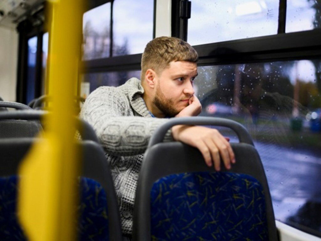 Спокойную поездку нарушил пассажир, что вошел на очередной остановке. Это оказался тучный мужчина, от которого несло перегаром и алкоголем. Сразу видно - мужичок опрокинул пару рюмашек перед выходом из дома. Хотя, судя по тому, что алкаш не зашел, а ввалился в салон, может и целый пузырь. Гость шатался так, словно был тонкой березкой в ураган, утро начало быть чуть интересным.